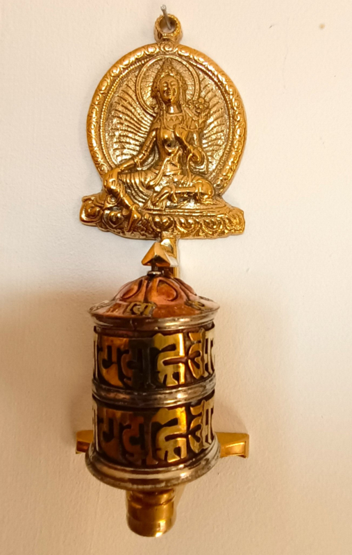 Deze gebedsmolen kun je zowel neerzetten als aan de muur hangen.